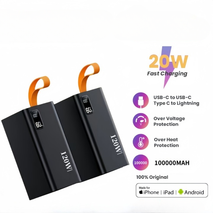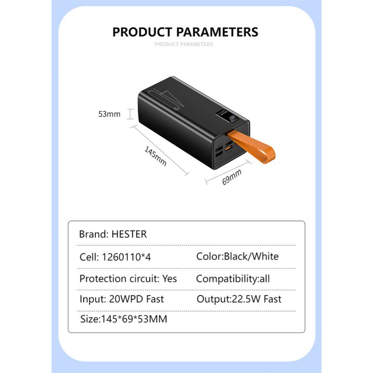Powerbank HESTER Robot 100000mAh PD120W Fast Charging 4 Output USB QC 3.0 Type-C