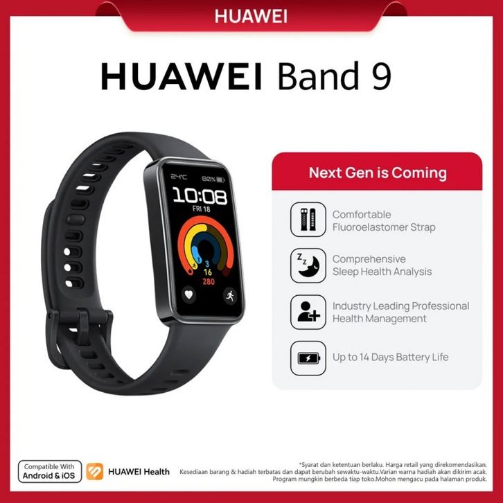 HUAWEI Band 10&9 Smartband | Frame alumunium premium | Analisa tidur dengan baik | Jam tangan pintar batre tahan lama