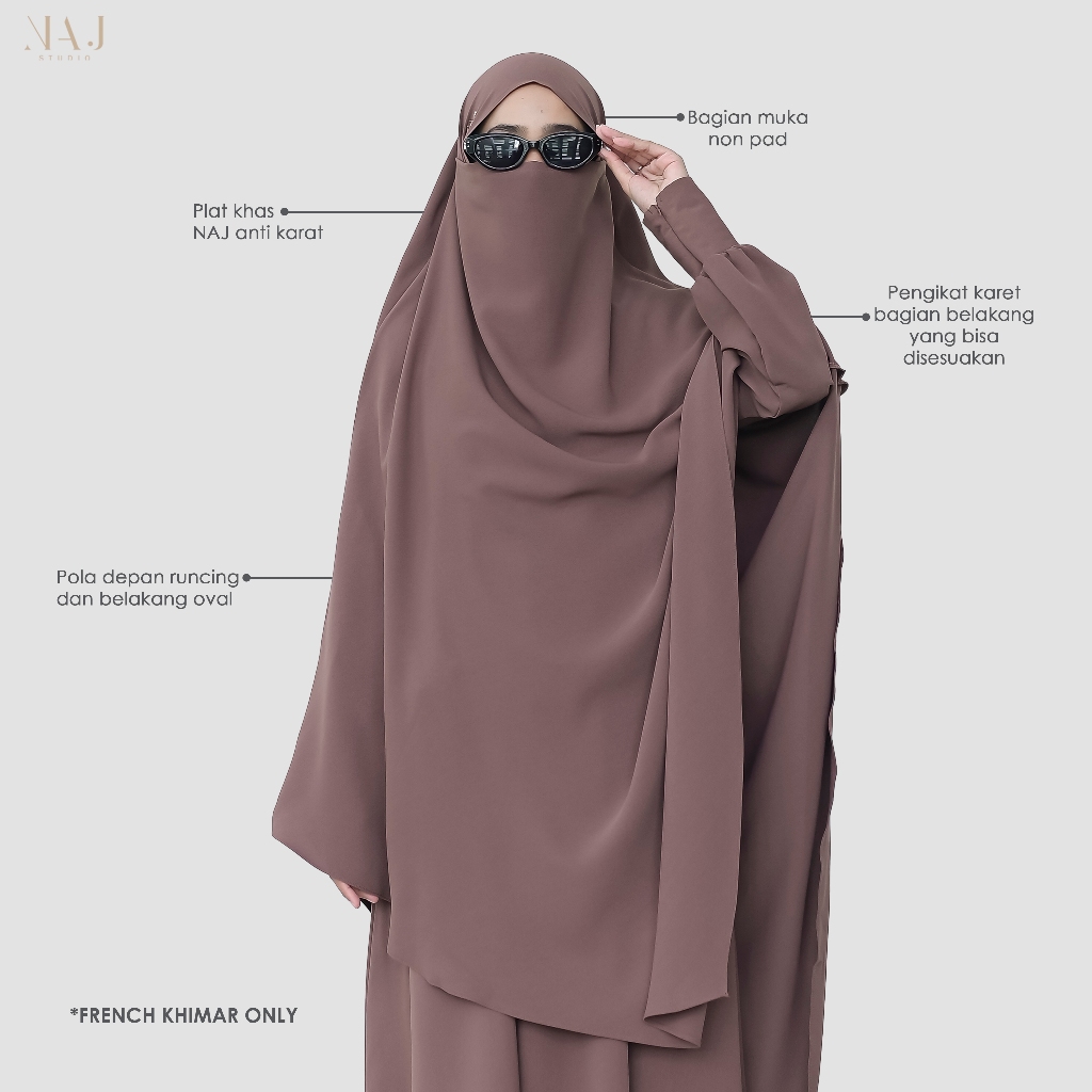NAJ Studio - Yerra French Khimar Anti UV Instant Hijab Cadar 2in1 Jumbo Syari Premium (FK ONLY)