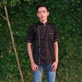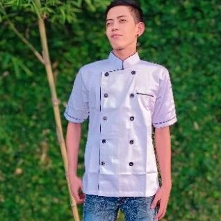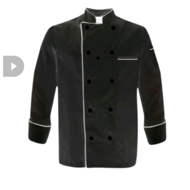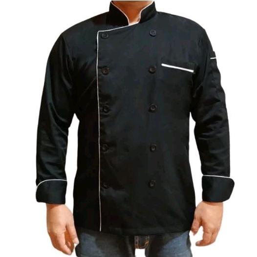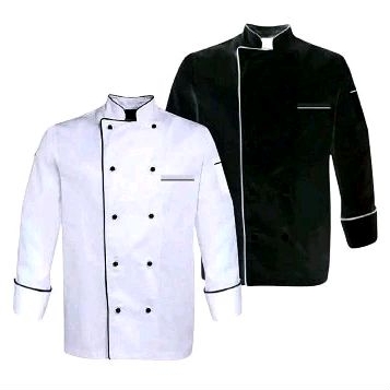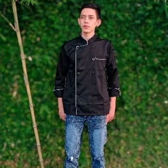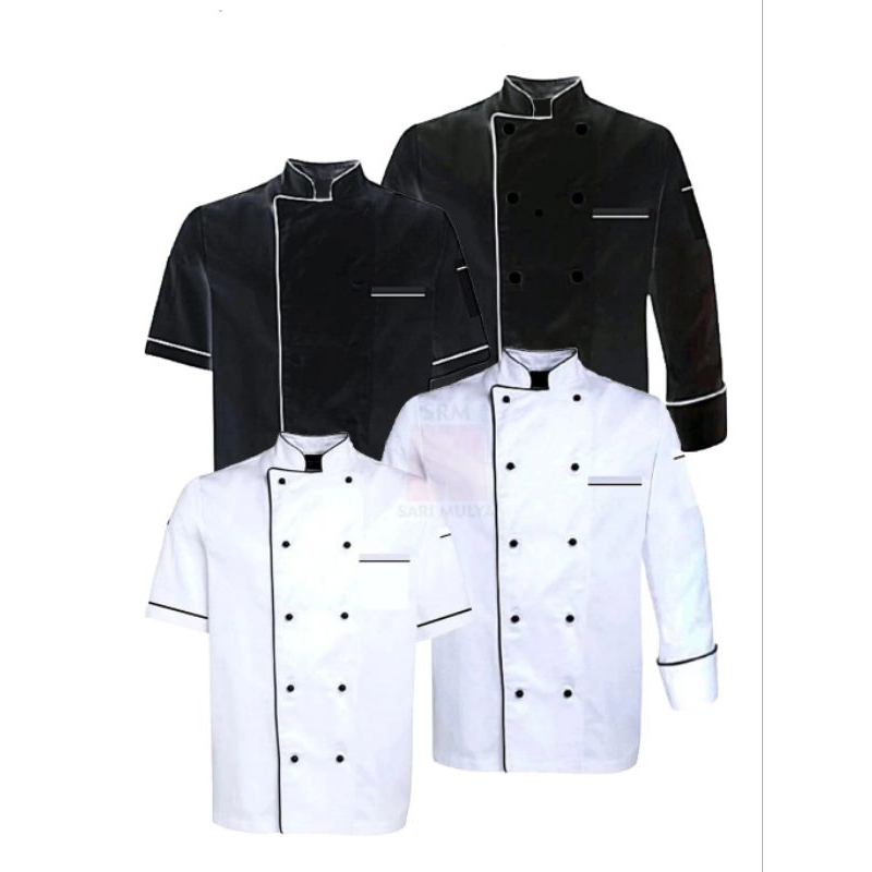 Baunster Baju Chef Baju Koki Lis Samping Body Fit Unisex Bahan Drill Uk Size