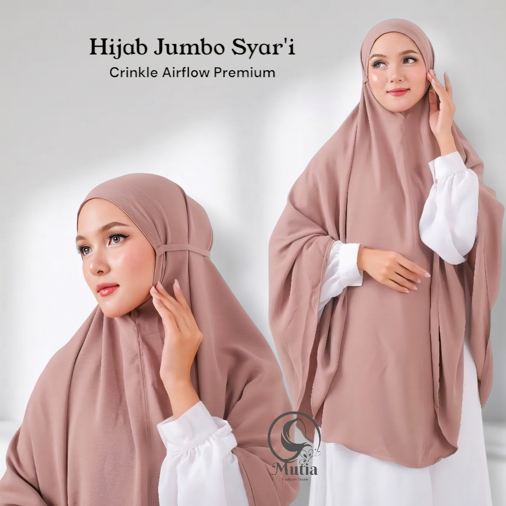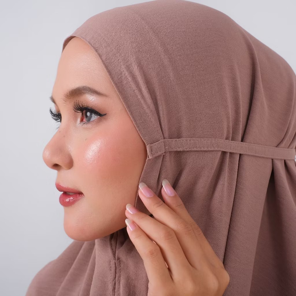 HIJAB Jilbab Kerudung Khimar Instan Syari Bergo Jumbo Non Pet Tali Bahan Crinkle Premium