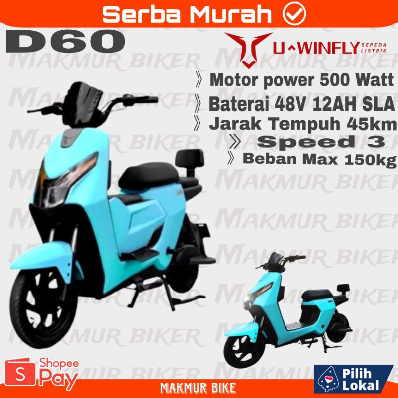 Sepeda Listrik Electric Bike D60 SLA 450 (ADV) Watt Dan T60 / D70 / ER BYTE / TOMAX X5 / TOMAX 2.0 / AT223 / AT226 / VAR