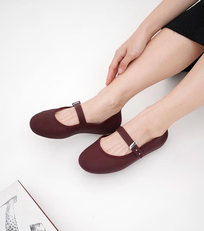 PORTO BLT - SEPATU BALET TALI WANITA KARET JELLY CASUAL TERBARU ANTI SLIP NYAMAN FLAT SHOES BLT SEPATU MARY JANE CHERRYRED | BURGUNDY - CHERRYRED, 36/37