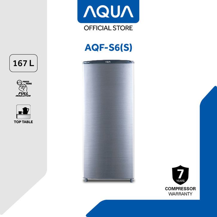 KULKAS AQUA 1 PINTU AQF S6 167 LITER LEMARI ES 6 RAK PENDINGIN FREEZER HEMAT ENERGI BESAR JUMBO TERBARU MURAH SHOWCASE