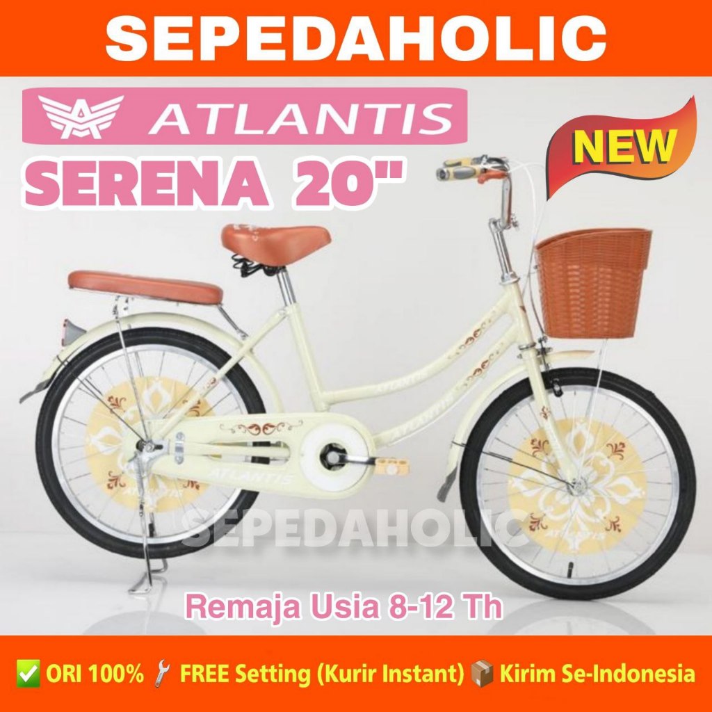 Sepeda Anak Remaja Perempuan ATLANTIS SERENA 95L BNB AURORA VELION 2055 Ukuran 20 Inch Keranjang Usia 8-12 Tahun