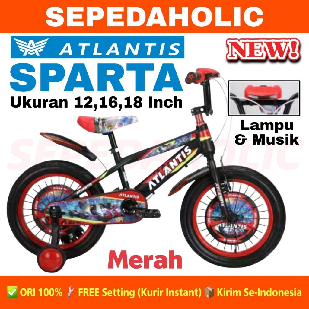 Sepeda Anak Laki BMX ATLANTIS SPARTA Ban Jumbo Musik Lampu Ukuran 12 16 18 Inch