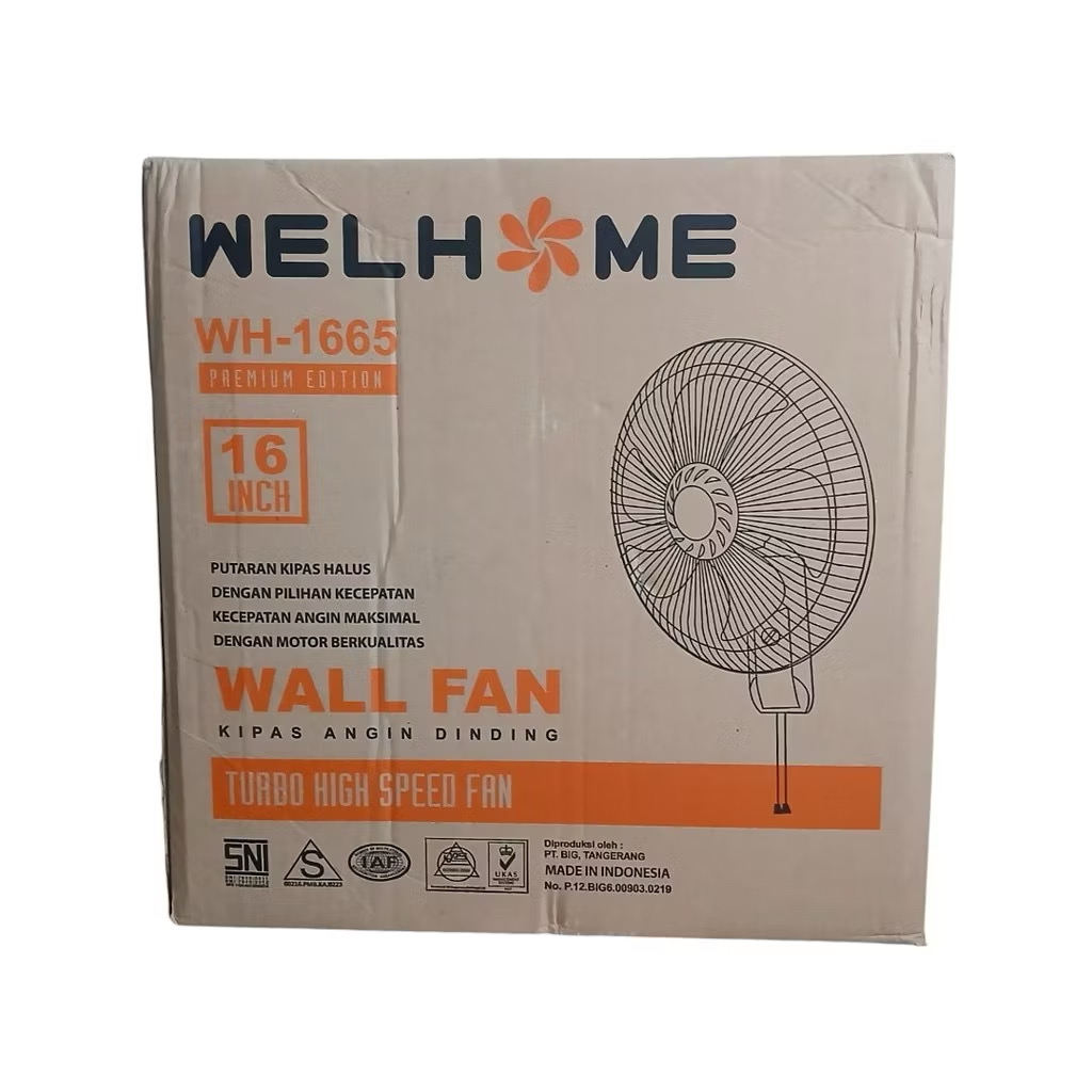Kipas Angin Dinding 16 Inch Wall Fan WH 1665 Gantung Tembok Welhome Baling Besi High Speed Premium
