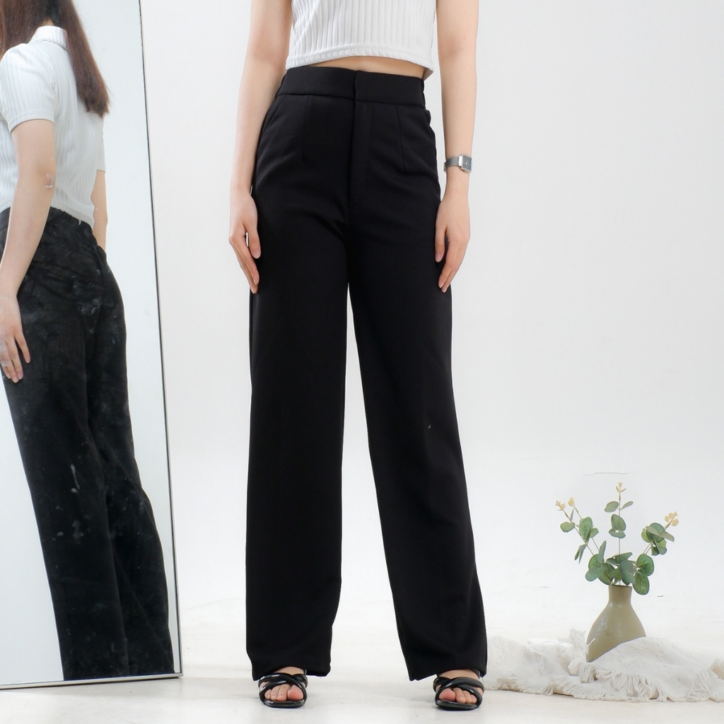 (Gratis Ongkir) Celana Cozy Long Pants Wanita Kulot Highwaist Rib Knit Premium Long Cullote Pants Highwaust Kekinian