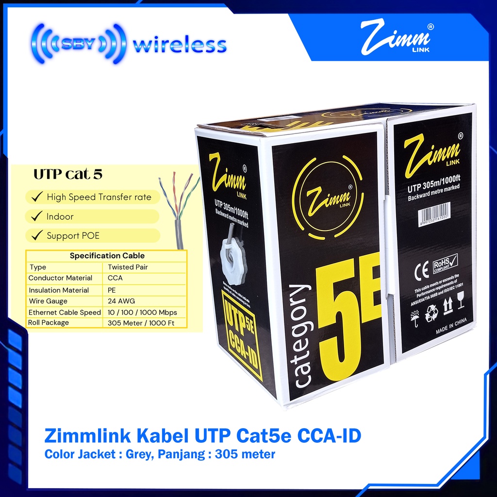 Kabel UTP Cat5e CCA ID Indoor Jacket kabel warna GREY Zimmlink