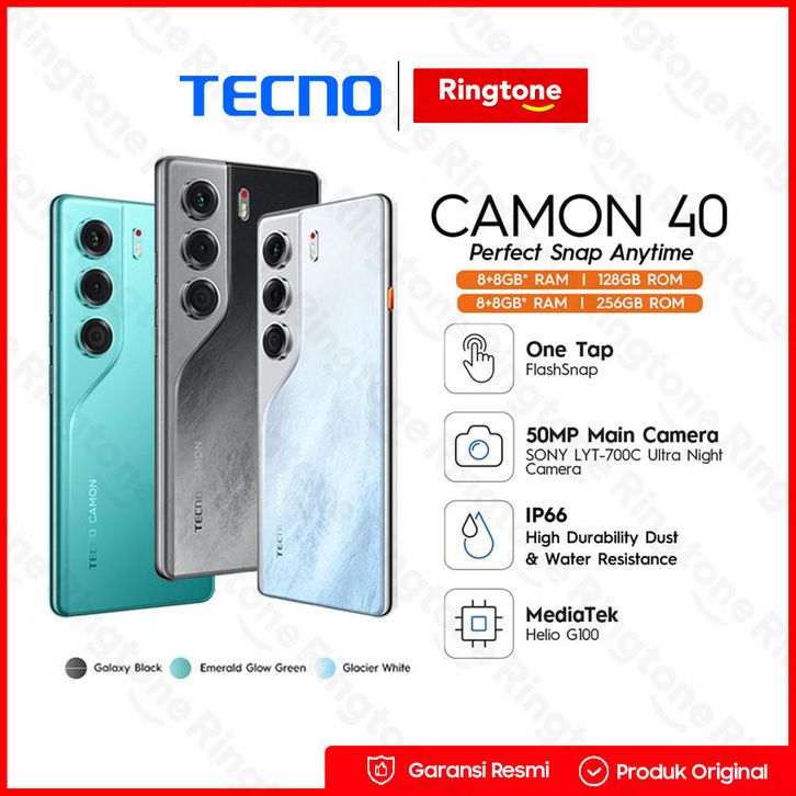 TECNO CAMON 40 8/128 + 8/256 GB GARANSI RESMI 1 TAHUN TECNO