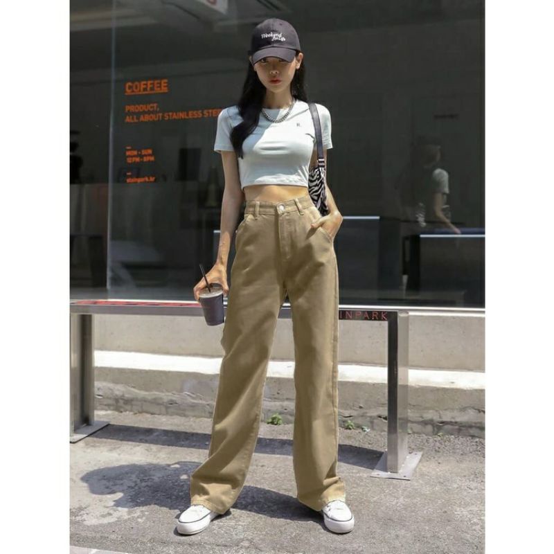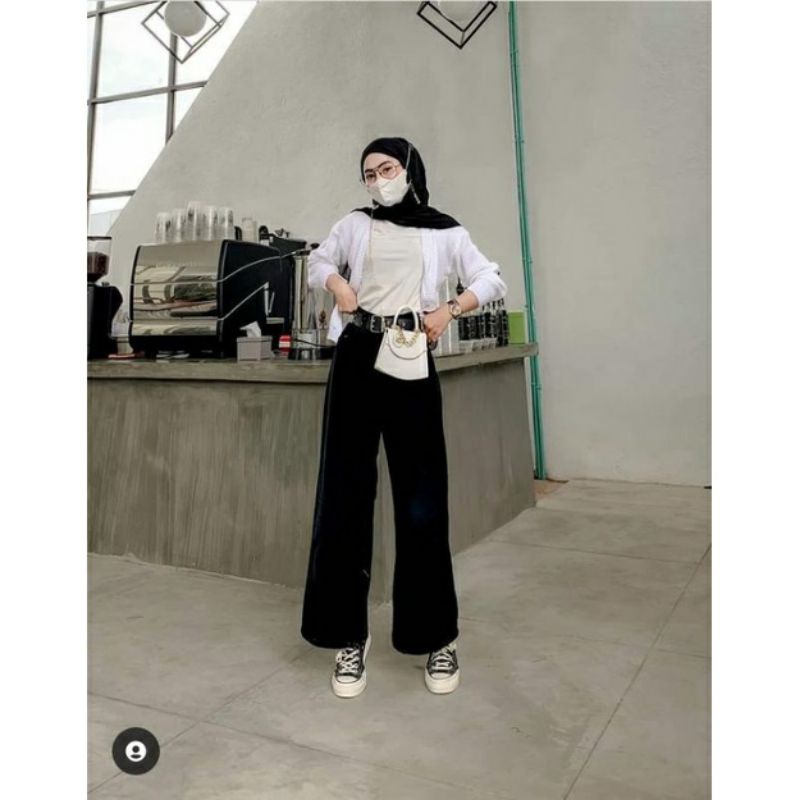 (Gratis Ongkir) Celana Kulot Jeans Wanita Putih Jins Hitam Denim Highwaist Murah Cewek Cewe Cullote Cutbray Kekinian