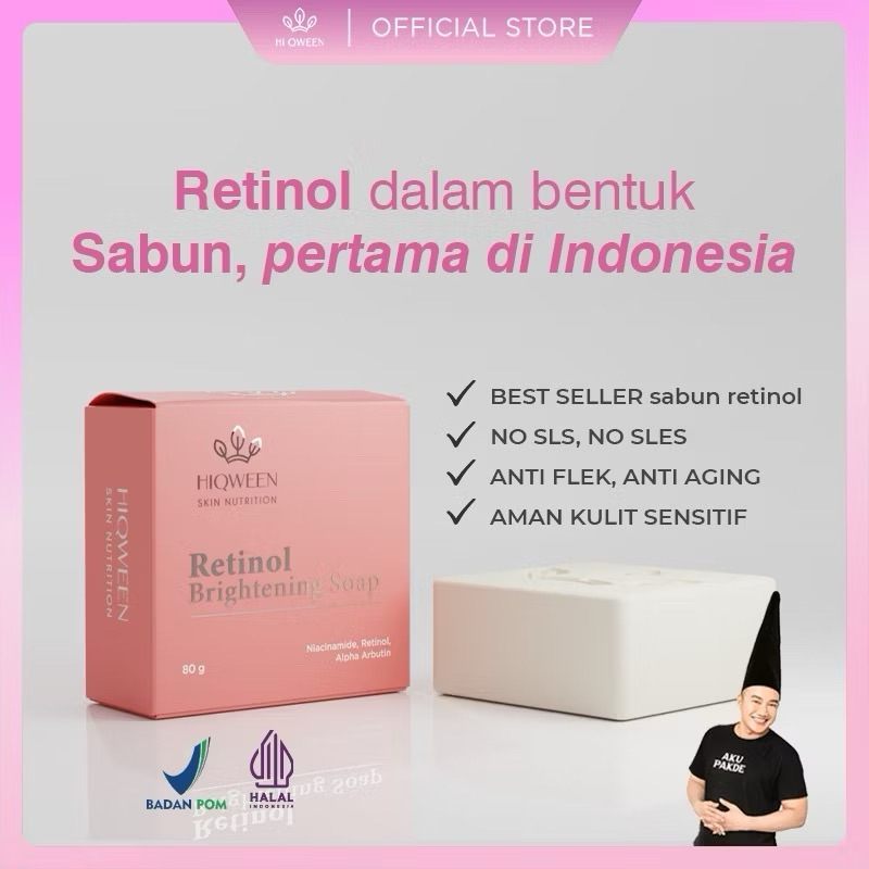 Hiqween Retinol Brigthening Soap - Facial Wash Sabun Cuci Muka Pemutih Penghilang Flek Hitam 80gr