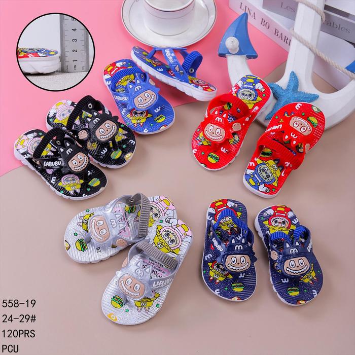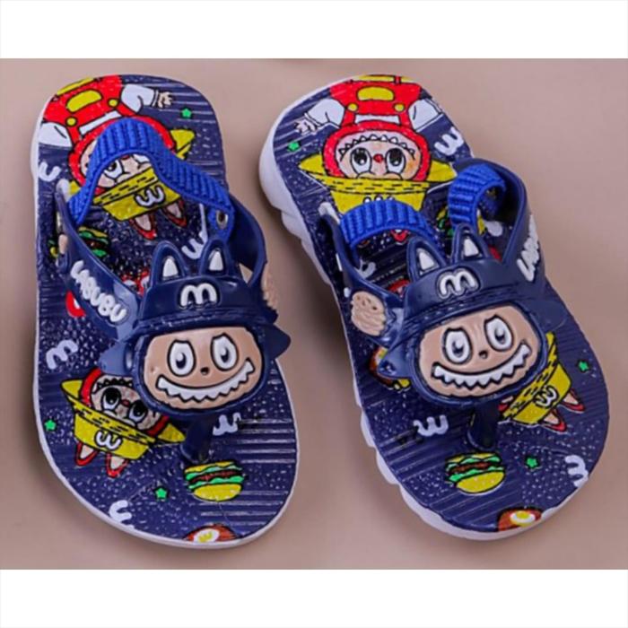 (558-15X) SANDAL JEPIT JELI LET ANAK CEWEK COWOK MOTIF LABUBU BUNYI CIT CIT GEMES KEKINIAN MOKAYA / SIZE 24-29 - BIRU MUDA, 24