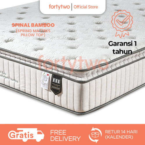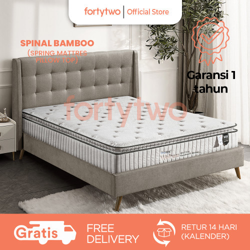 Fortytwo Kasur Spring Bed with Pillow Top Premium Spinal Care Hypoallergenic Bamboo Mattress