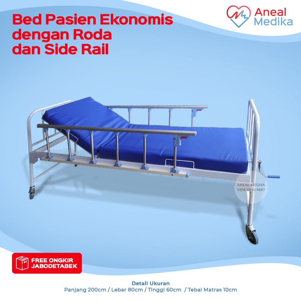 Bed Pasien Ekonomis 1 Crank dengan Side Rail Aluminium - Ranjang Pasien 1 Engkol - Ranjang Medis