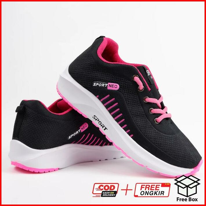 Sepatu Sneakers Olahraga Ringan Nyaman Sport Neo Pria Wanita Hak Datar Casual Hitam Shoes Running Merah Kasual Snekers K