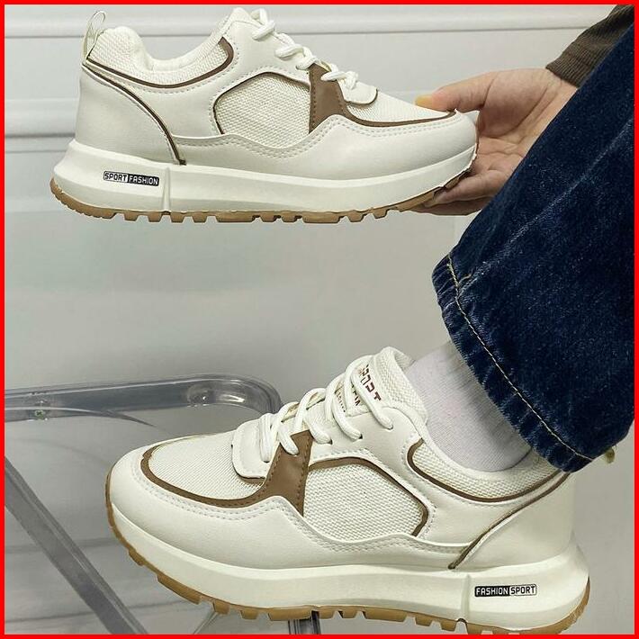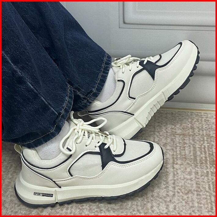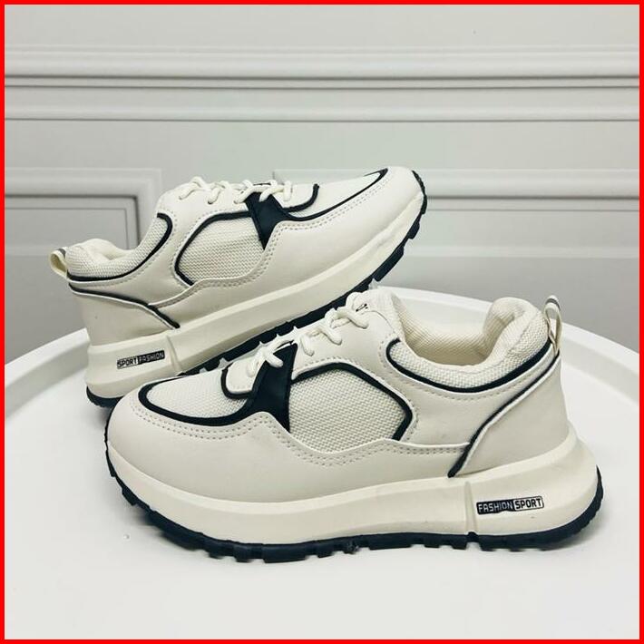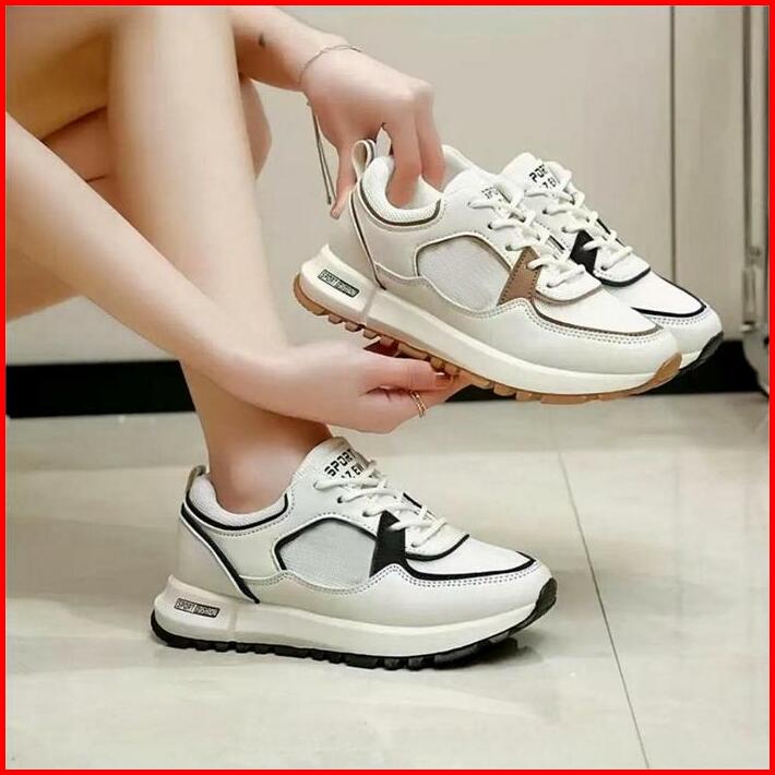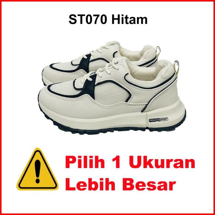 Sepatu Wanita Sneakers Korea Casual Sport Shoes Nyaman Dan Bernapas Olahraga Krem Hitam St070 Cewek Kasual