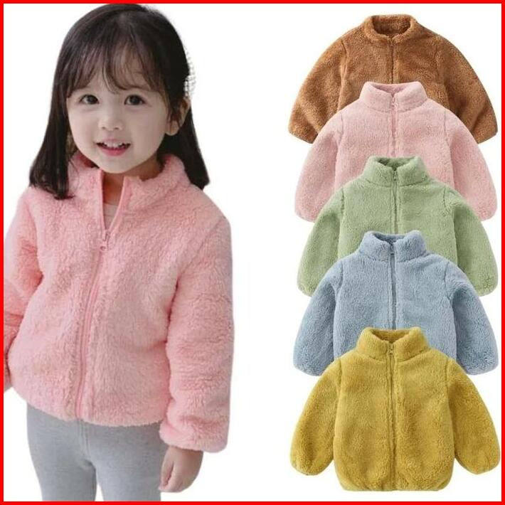 Jaket Anak Bulu Sherpa Unisexs Berkualitas Premium Usia 1-12 Tahun Laki-laki Perempuan Lengan Panjang