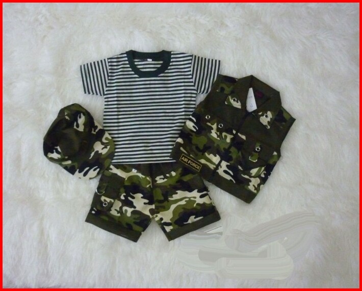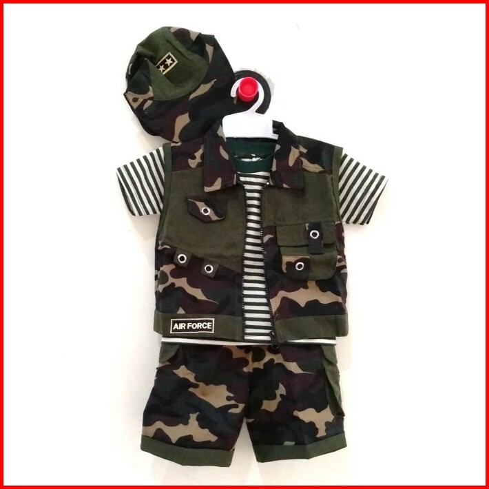 Baju Setelan Anak Bayi Rompi Tentara Topi