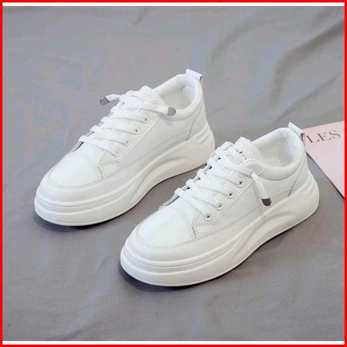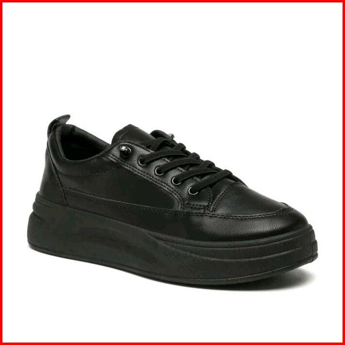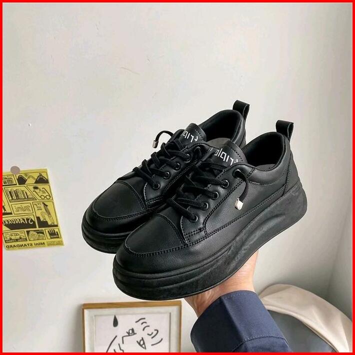 Sepatu Sneakers Wanita Sekolah Warna Hitam Putih Korean Style Sepatu Perempuan Polos Murah Terbaru Black Shoes Hak Datar