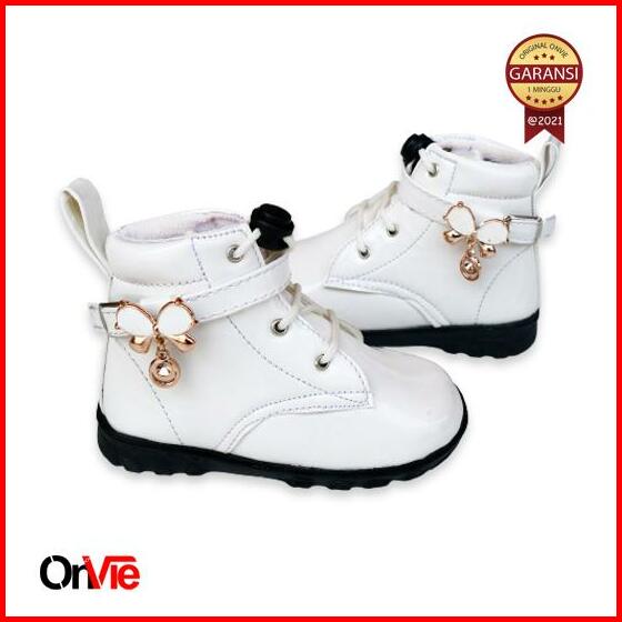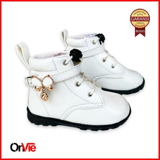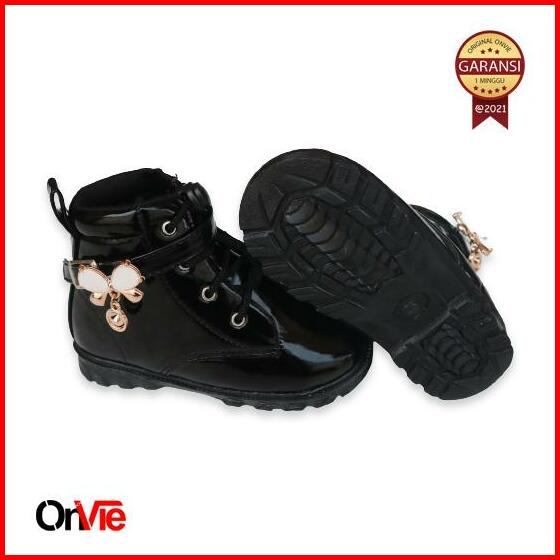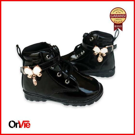 Sepatu Boots Anak Perempuan Manik Kupu-kupu Kecil Sepatu Boots Anak Tinggi Glossy
