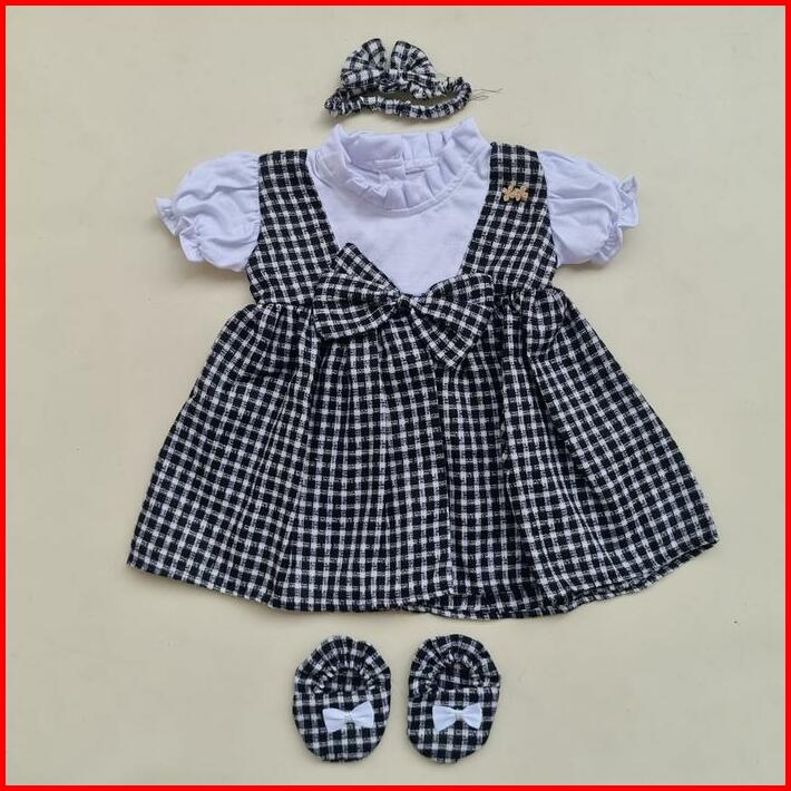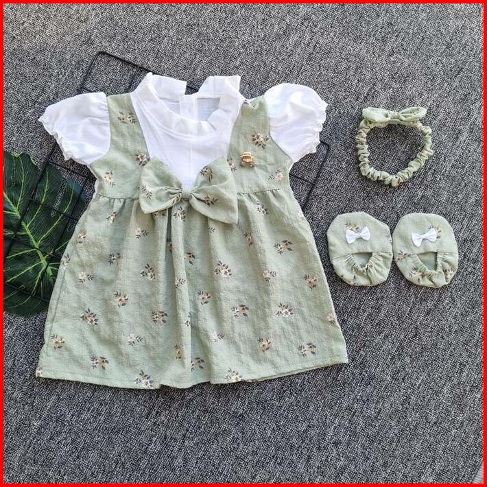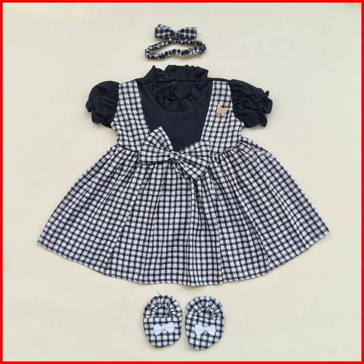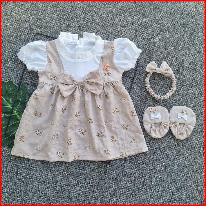 Baju Anak Perempuan 0-6 Bulan Dress Anak Perempuan Set Sepatu Bandana Newborn