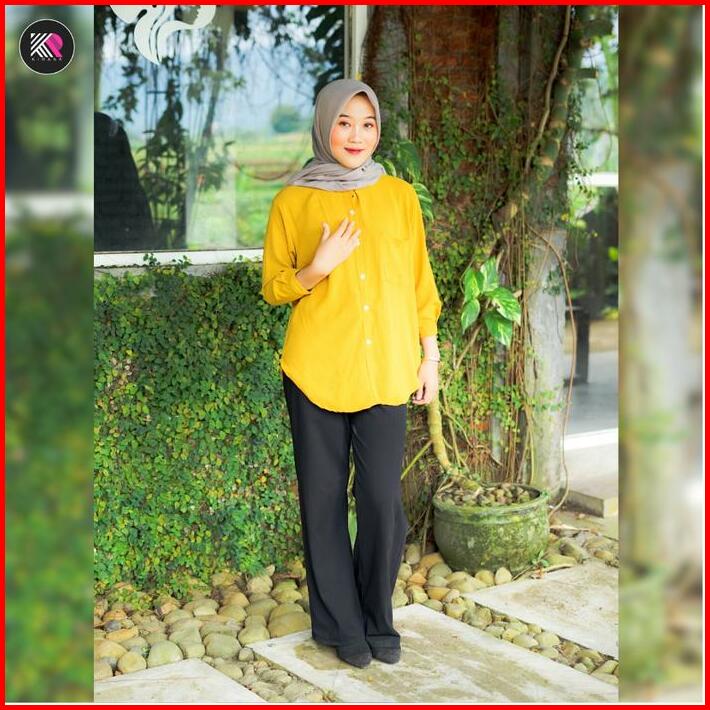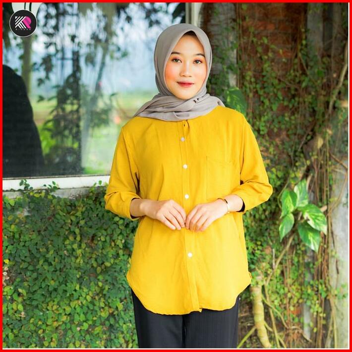 Kiranaofficial Kemeja Daily Top Blouse Crinkle Atasan Wanita Daily Full Kancing