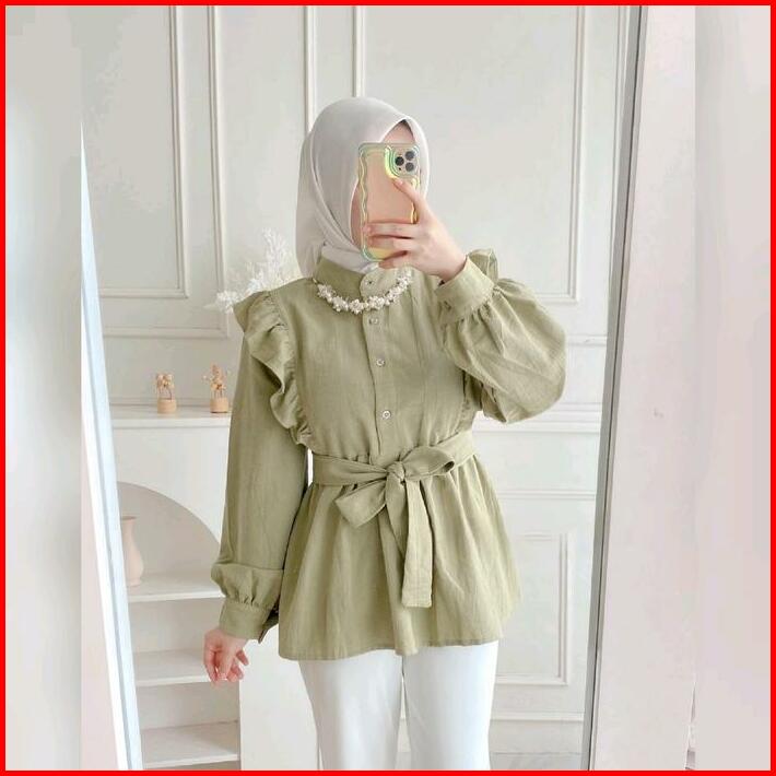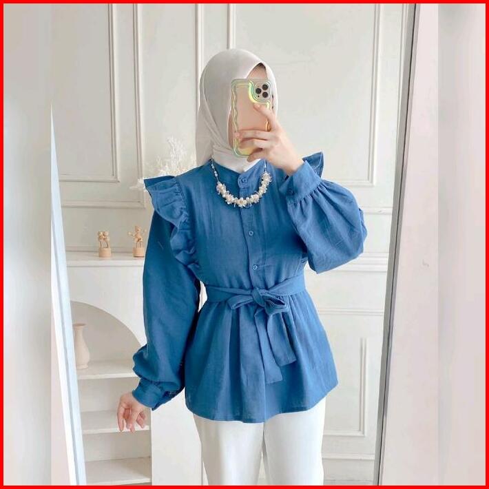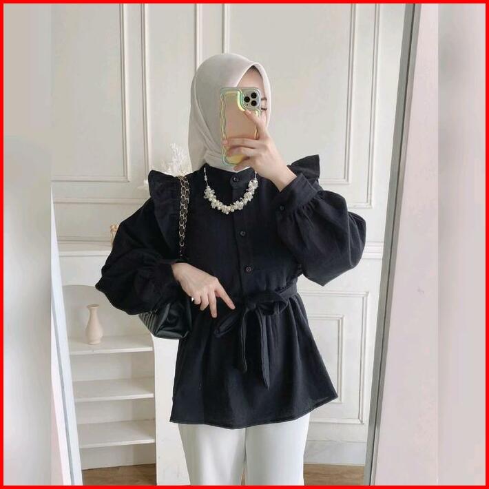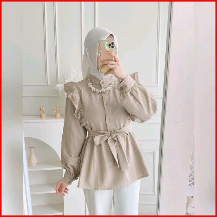 Fuji Blouse Ruffle Kemeja Atasan Tangan Panjang Crinkle Airflow Full Kancing Busui Kerah Baju Wanita Casual Oversize Pan