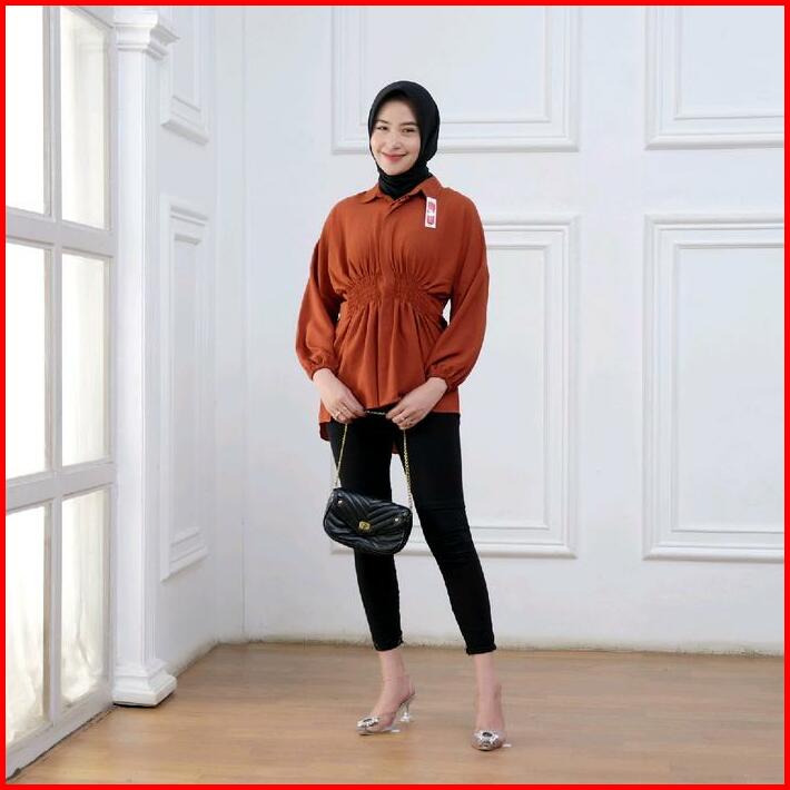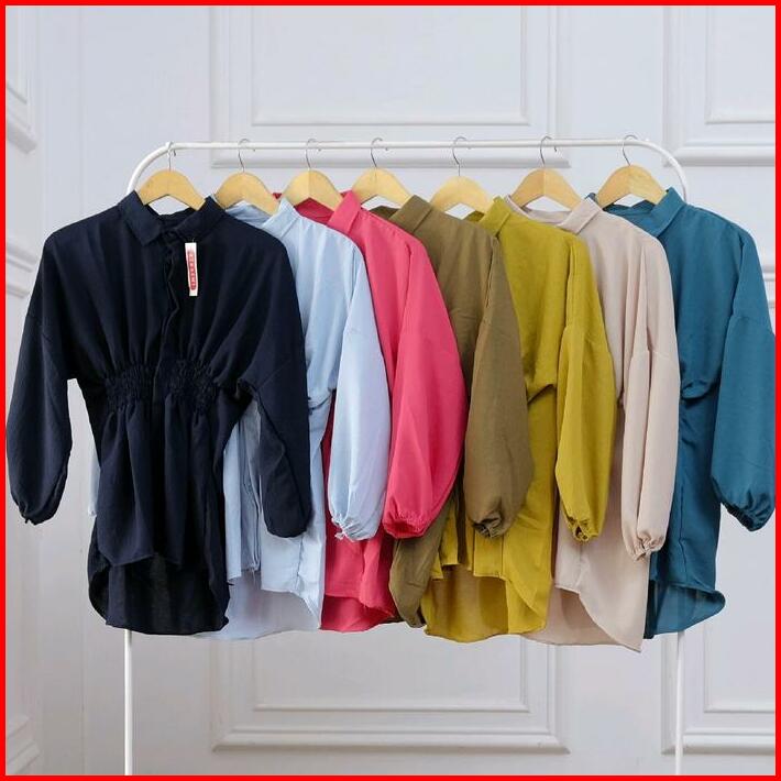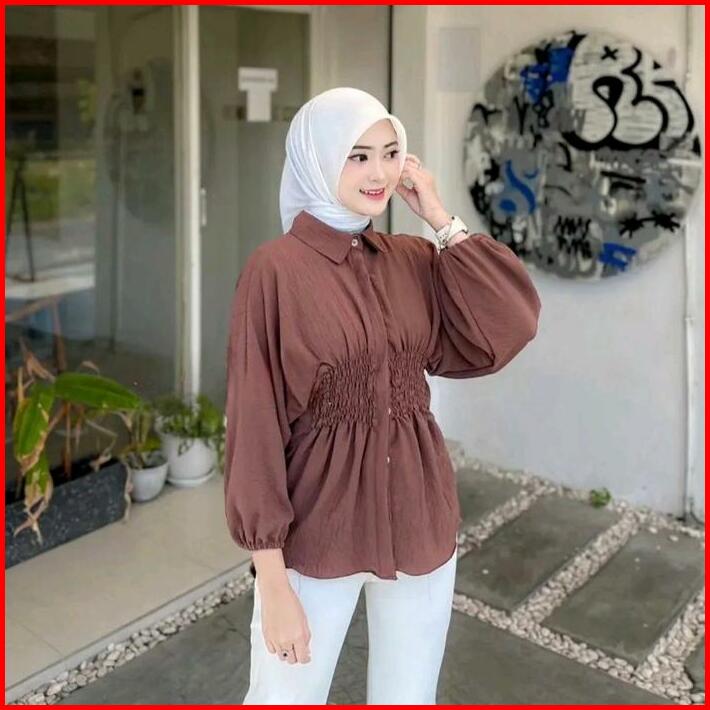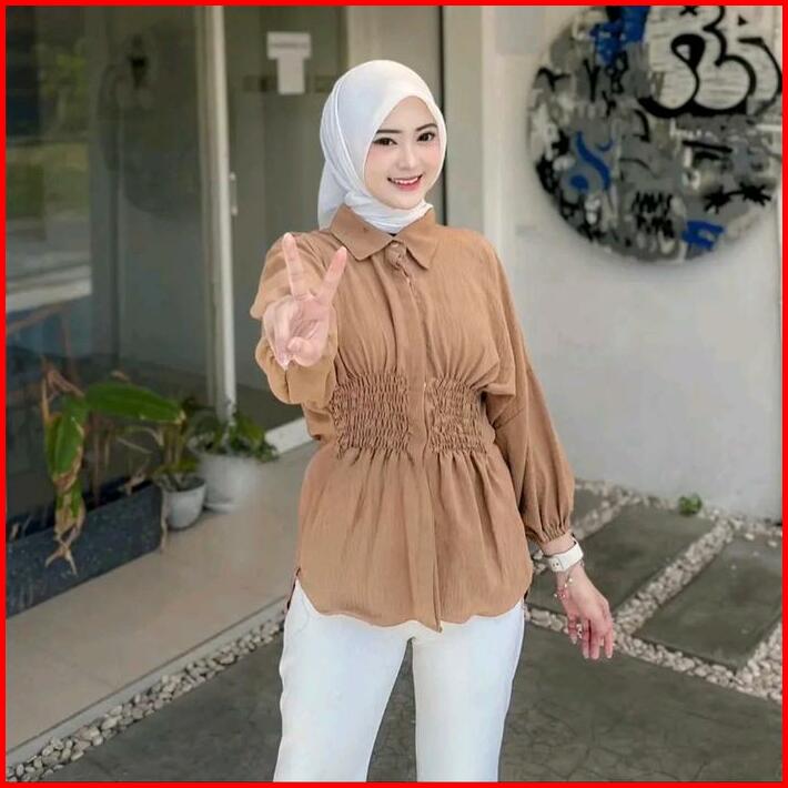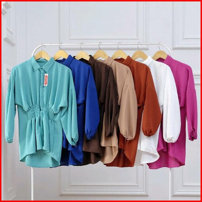 Aulia Blouse Kemeja Wanita Basic Crinkle Atasan Wanita Polos Kerut Airflow Baju Panjang Oversize Casual