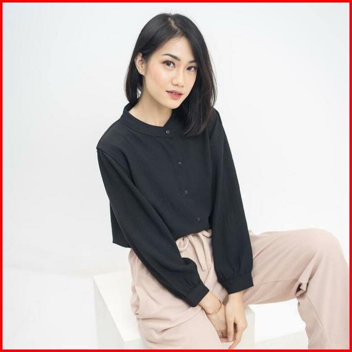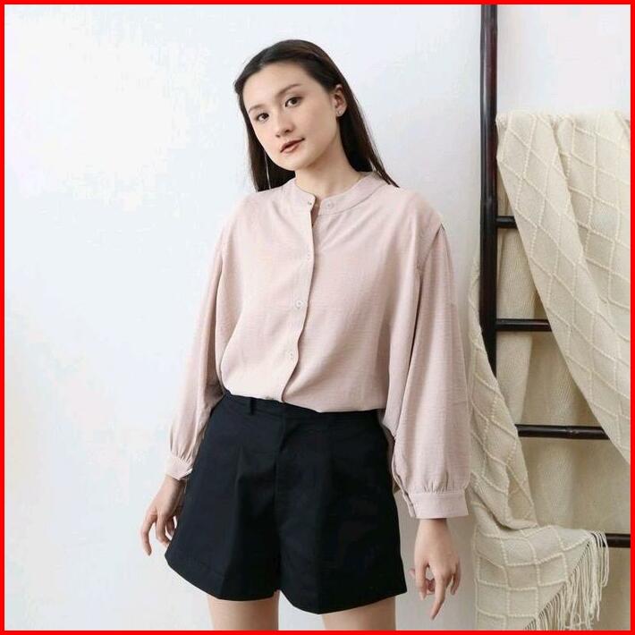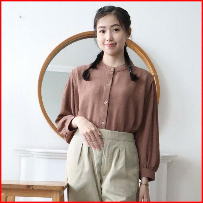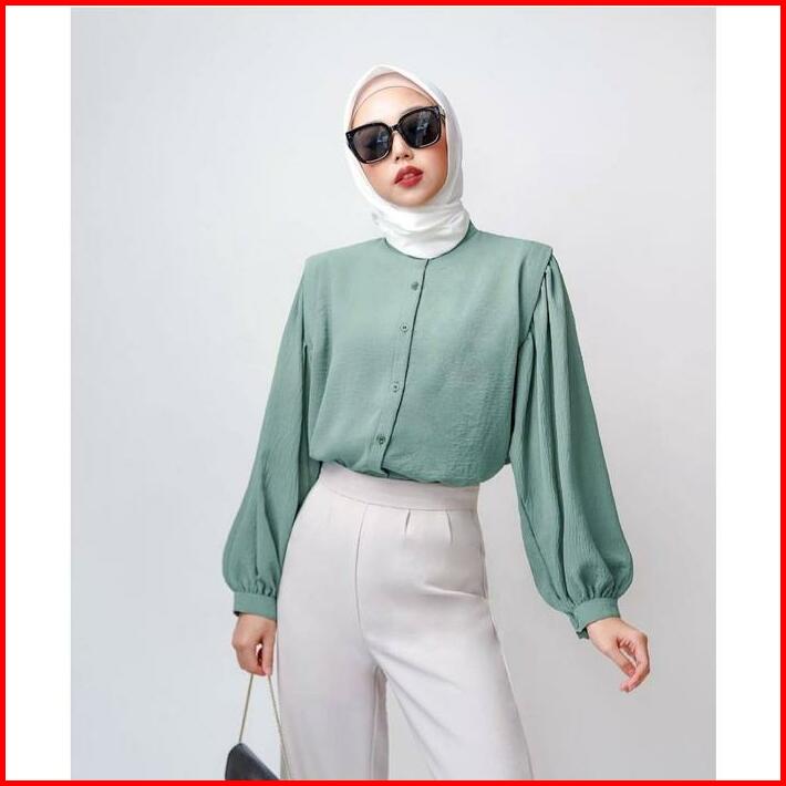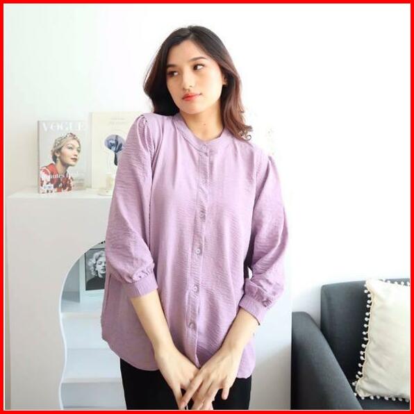 Kemeja Crinkle Premium Shanghai Berliana Bluose Oneck Longsleve Polos Camelia Blous Top Baju Wanita Airflow Kancing Top