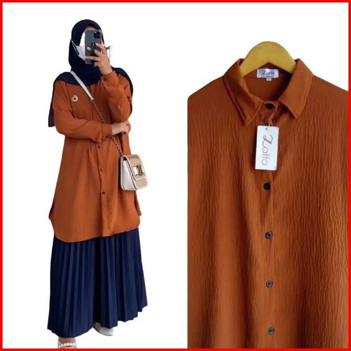 Tunik Crinkel Airflow Kemeja Airflow Terbaru Crinkle Kancing Atasan Muslim Wanita Variasi Panjang