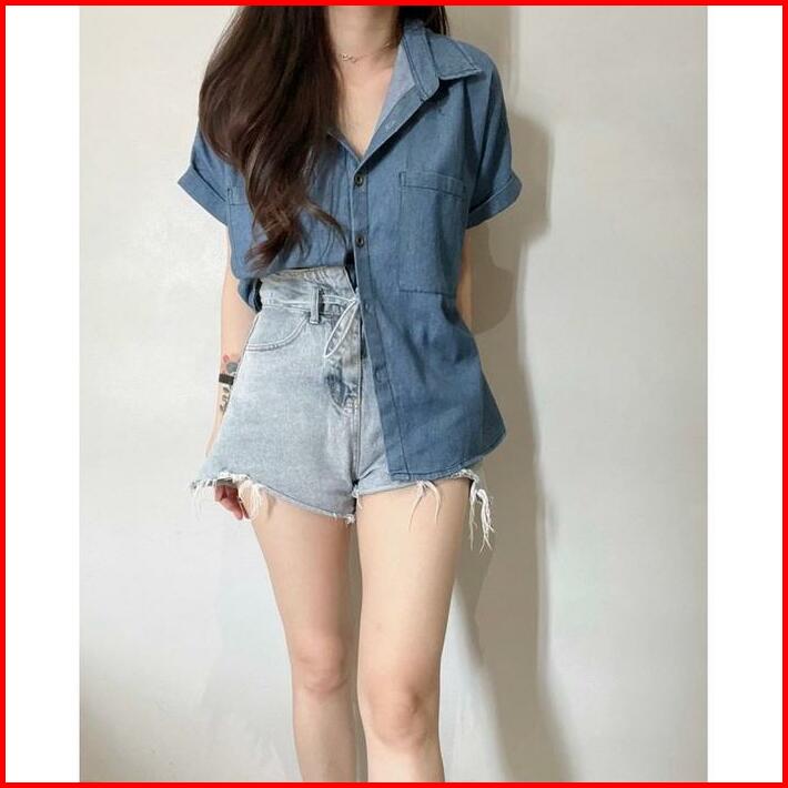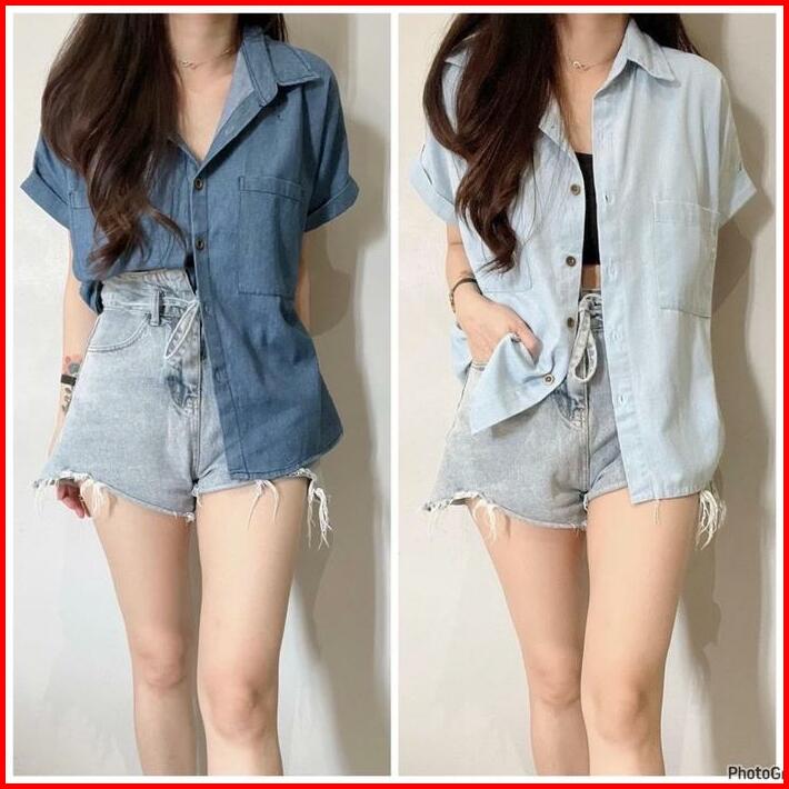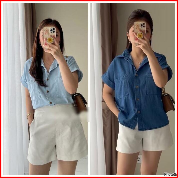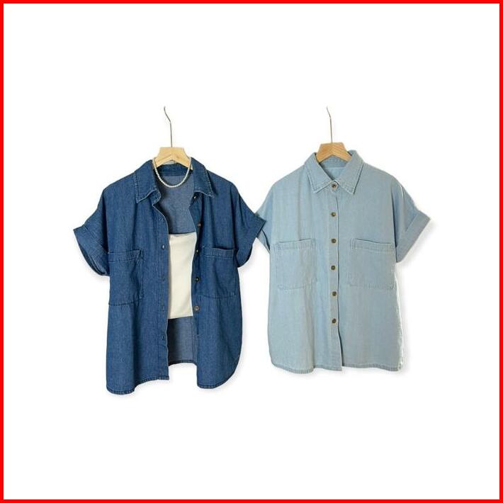 Belinda Denim Shirt Kemeja Wanita Lengan Pendek Jeans 9067