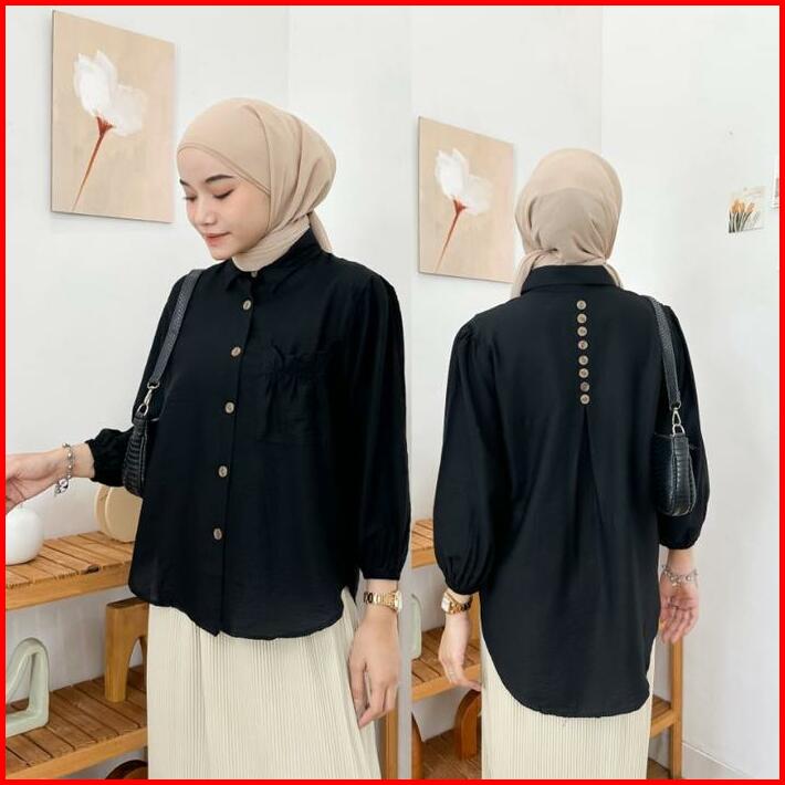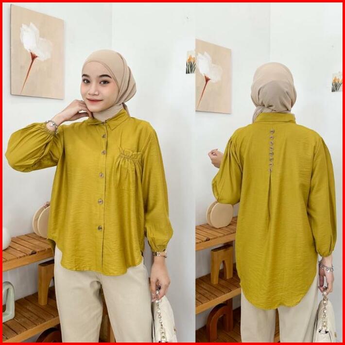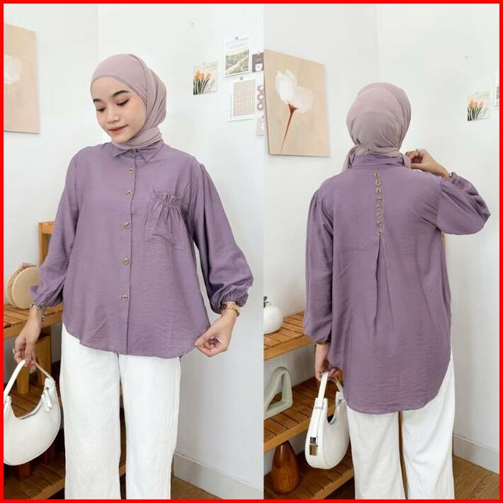 Kemeja Polo Linen Wanita Megumi Shirt Kemeja Wanita Kancing Depan Belakang Atasan Panjang