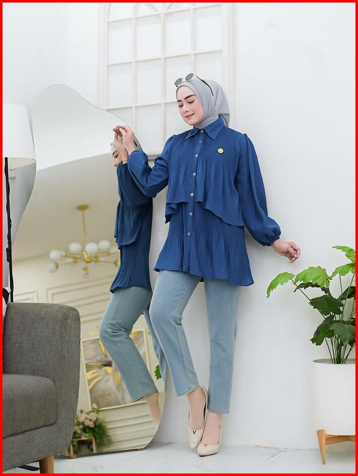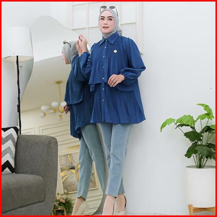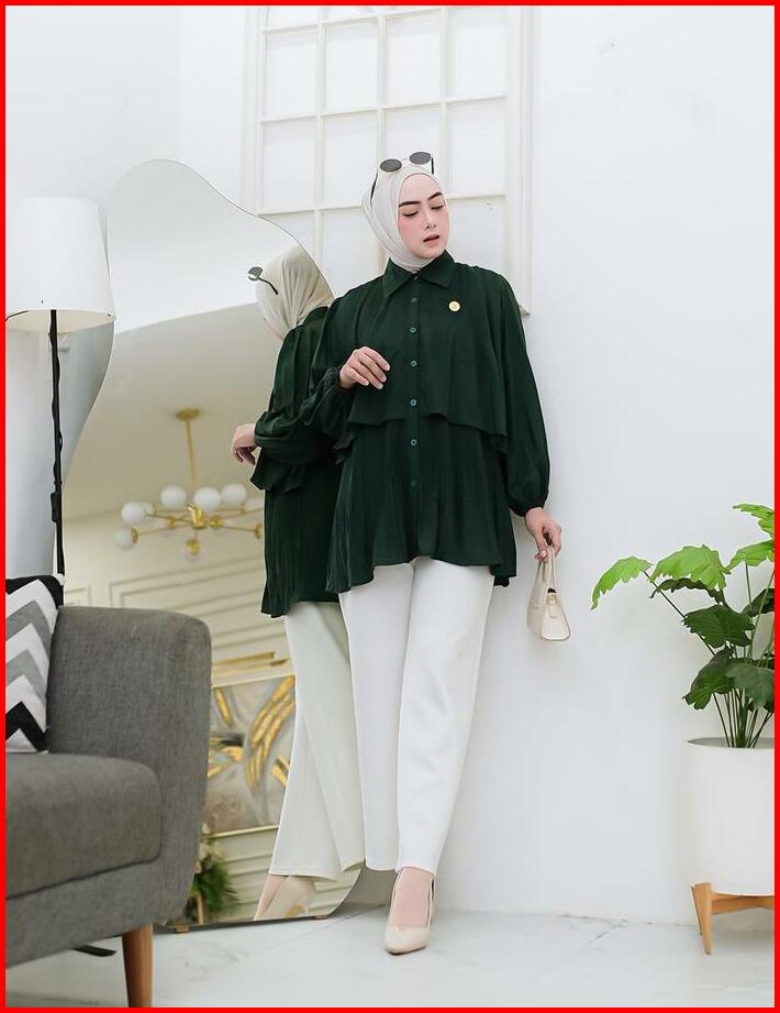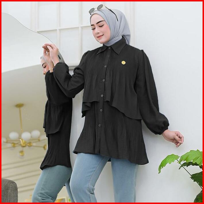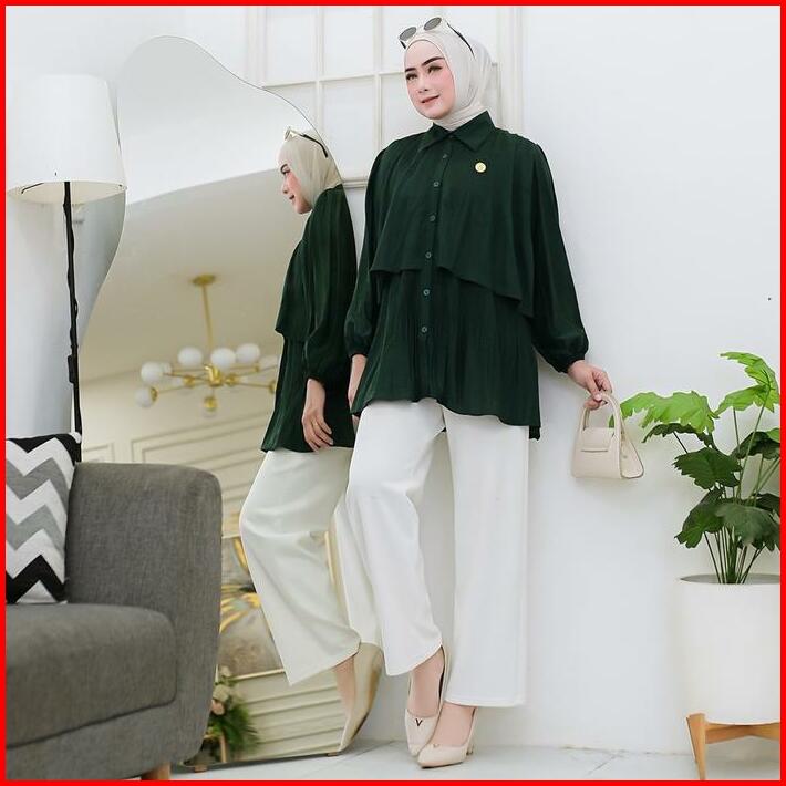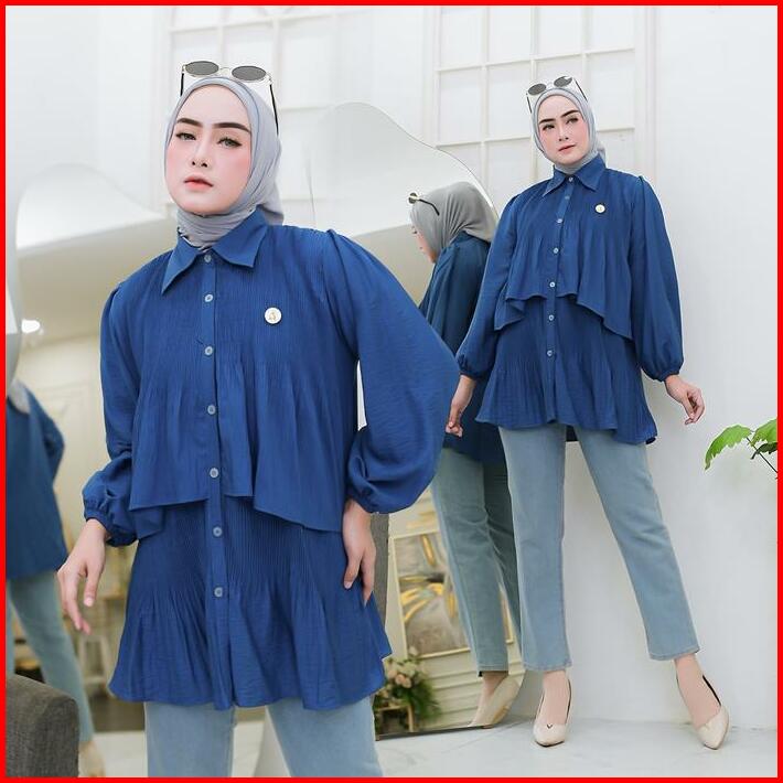 Calista Blouse Kemeja Pleats Atasan Wanita Oversize Kekinian Bahan Plisket Lidi Polo Linen Hq