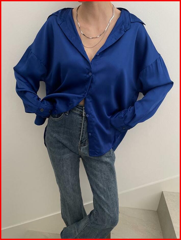 Kadaka T-0428 Kemeja Oversized Satin Wanita Kancing Oversize