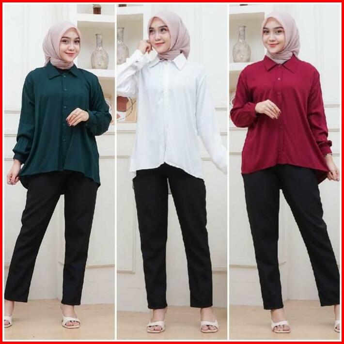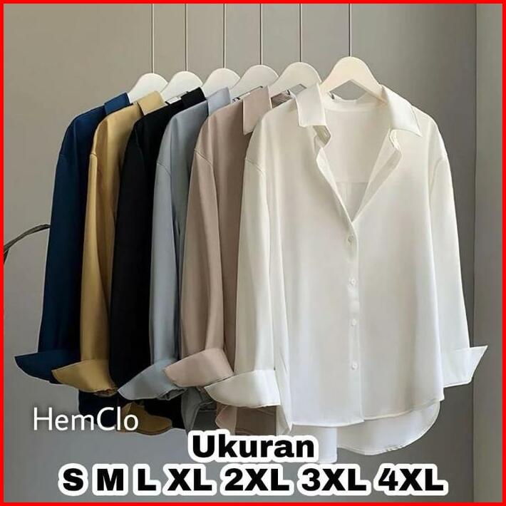 Hemclo Kemeja Polos Wanita Big Size M L Xl Xxl 3xl 4xl Xxl Xxxl 4l 5l Atasan Jumbo Over Size Basic Kancing Rayon