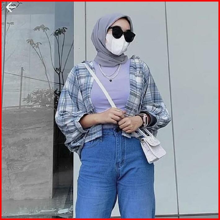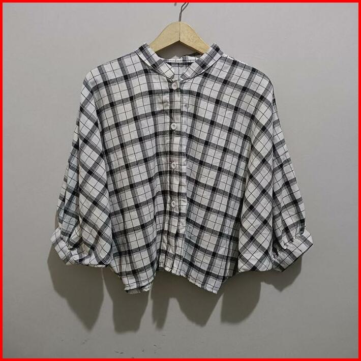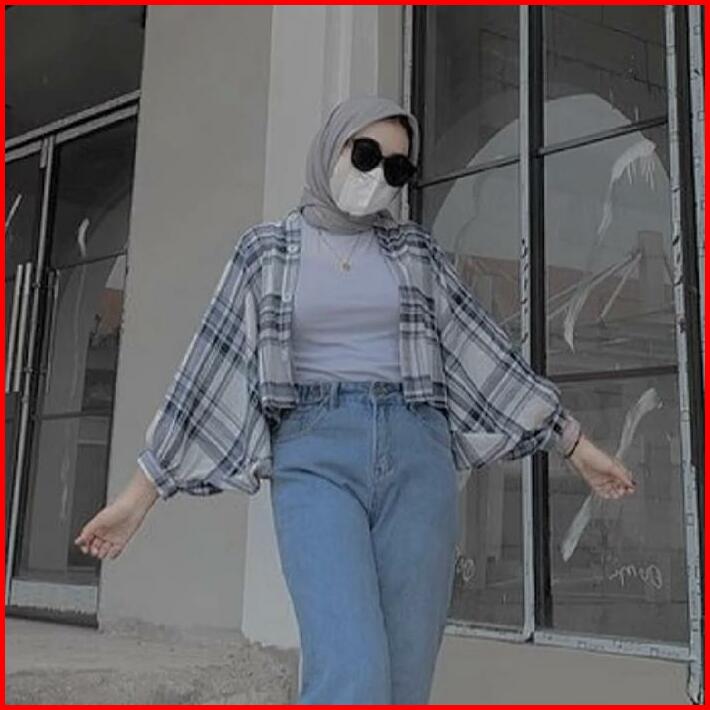 Kemeja Flanel Batwing Wanita Lengan Balon Kemeja Wanita Kekinian Baju Fit Panjang Oversize