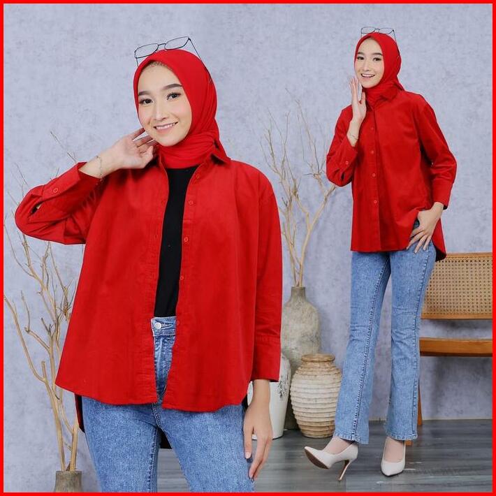 Kemeja Corduroy Tangan 7 8 Polos Wanita Nyaman