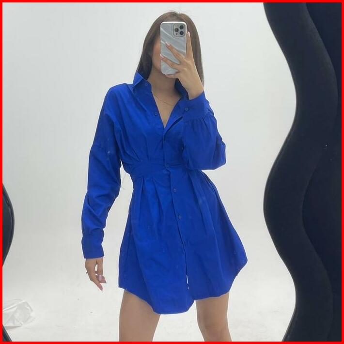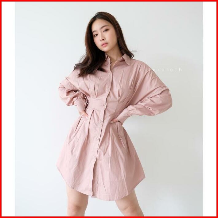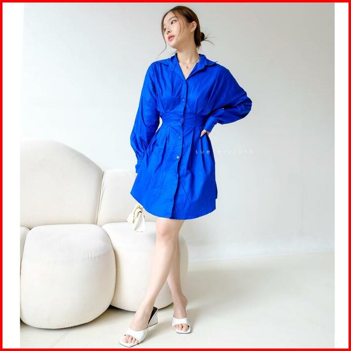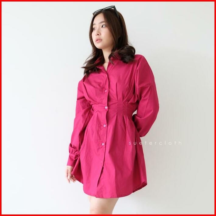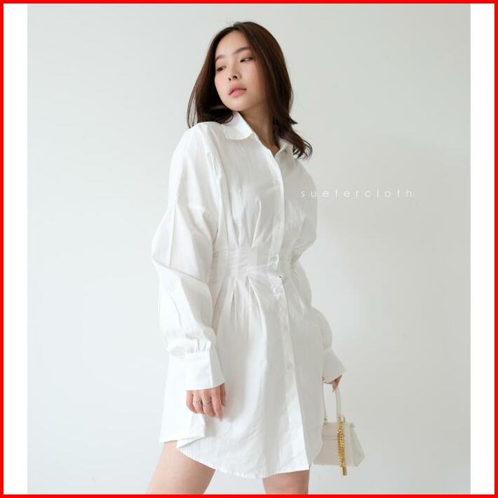 Eva Shirt Dress Longsleeve Dress Kemeja Wanita Premium Dress Kemeja Berpinggang Corset Dress Baju Casual Midi Dress Over