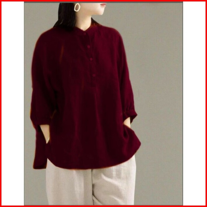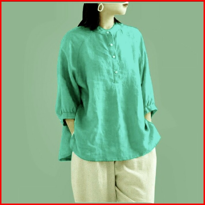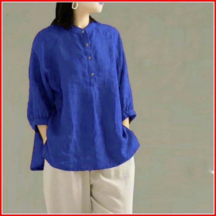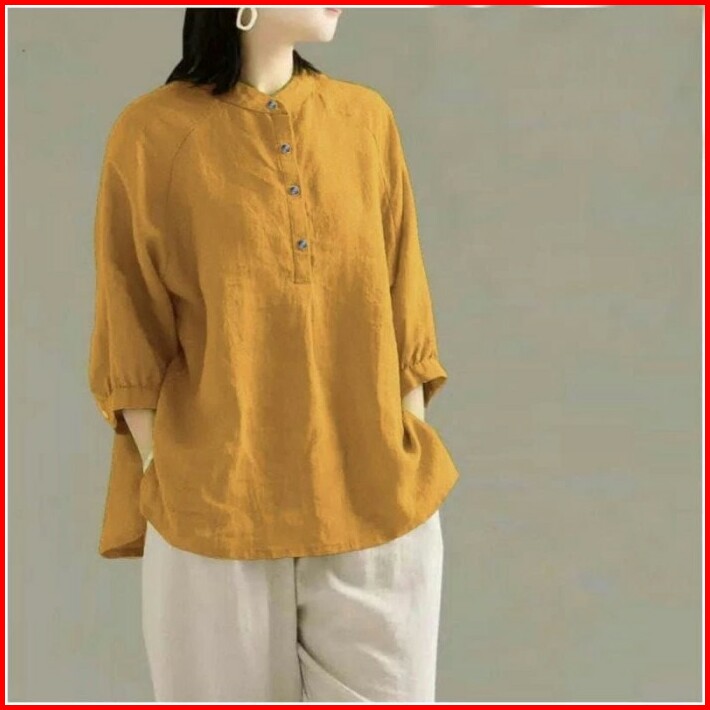 Kemeja Wanita Kerah Shanghai Linen Premium Kancing 4