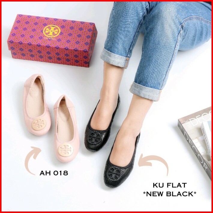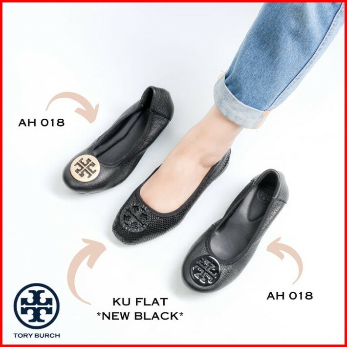 Sepatu Tb Wanita Flatshoes 100 Kulit Asli Tory Ku New Black