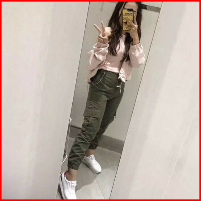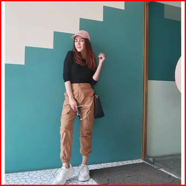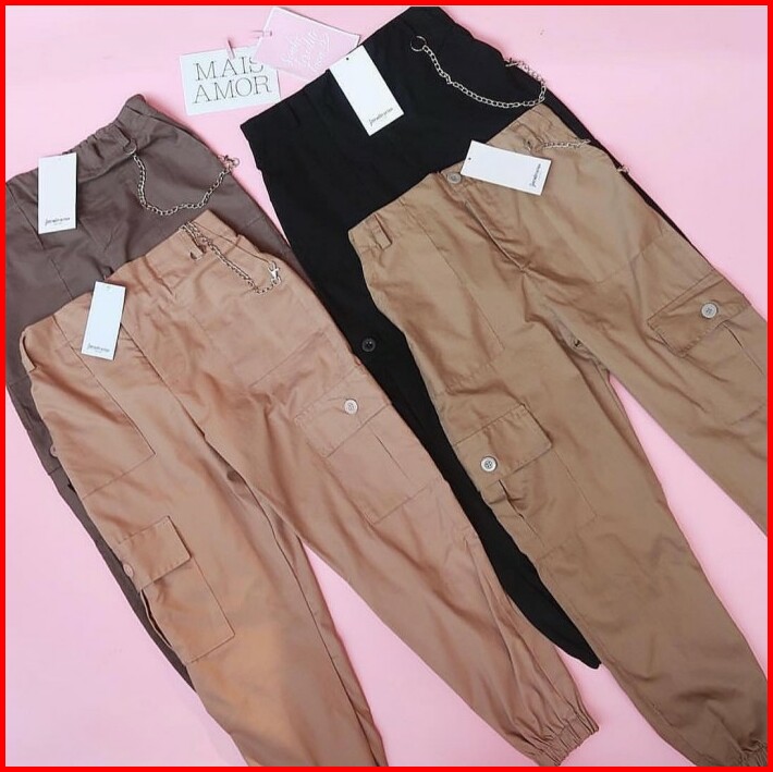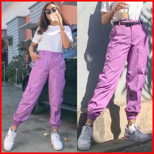 Celana Wanita Polos Jogger Cargo Lylac Lilac Aleta Baggy Pants America