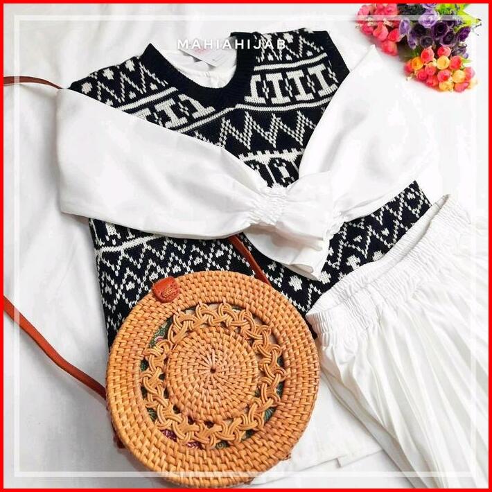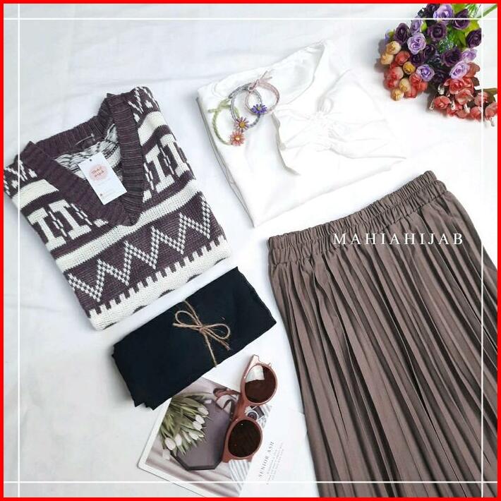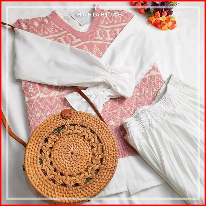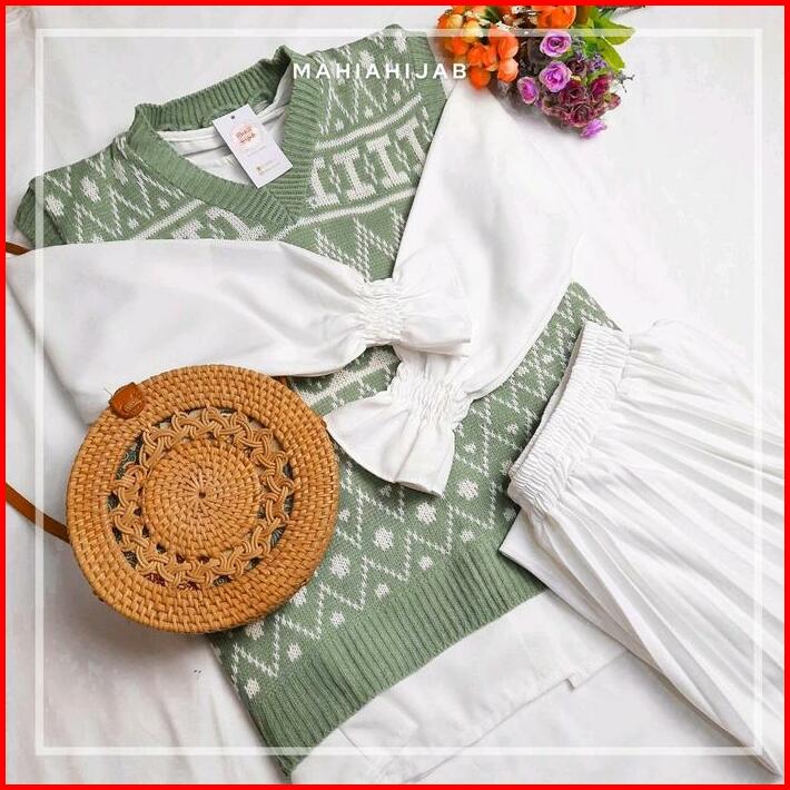 5in1 Setelan Lengkap Momo Set Vest Rajut Blouse Rok Hijab Outfut Korean Style By Mahiahijab