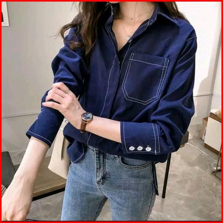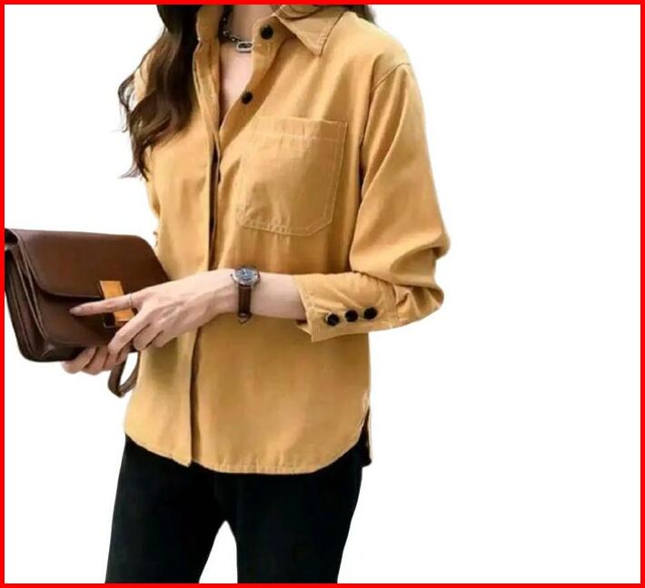 Kirani Shirt Kemeja Wanita Milenial Katun Import Ootd Polos Lembut Mustard Navy Atasan Nyaman Simple Casual Panjang Line