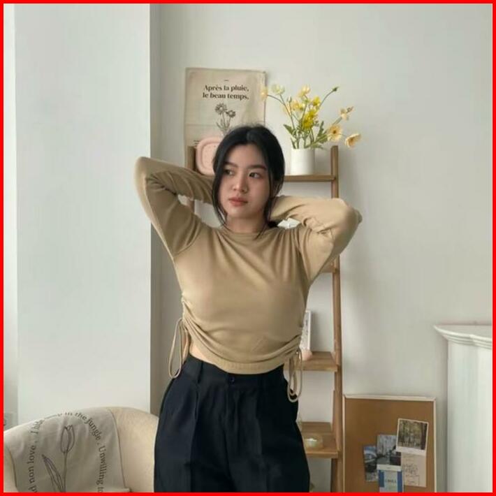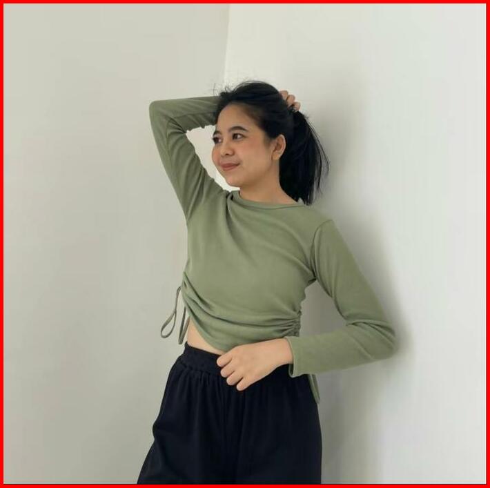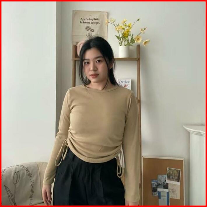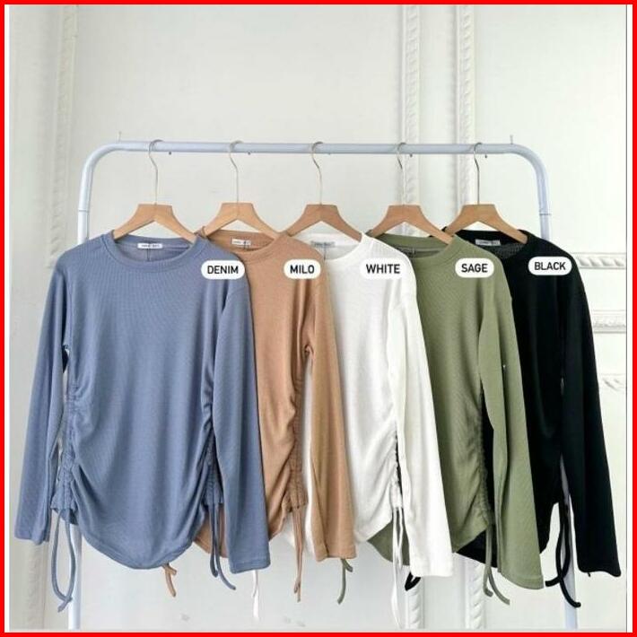 Vest Knit Top Blouse Serut Wanita Kekinian Terbaru Fara Knit Blouse Serut Kanan Kiri Kaos Kemeja Wanita Muslimah Termura