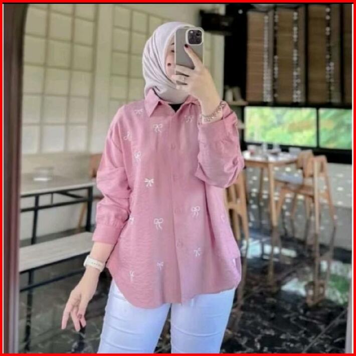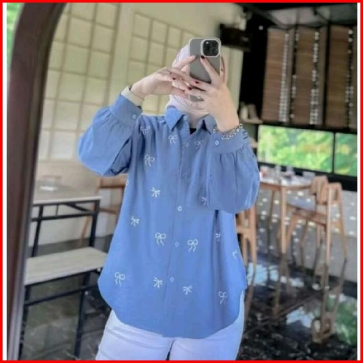 Zahra Kemeja Wanita Bordir Ukuran Standar Dan Jumbo Full Kancing Bahan Linen Baju Casual Dan Atasan Formal Kerja. Basic