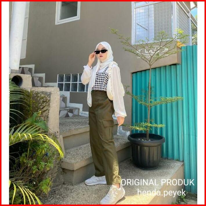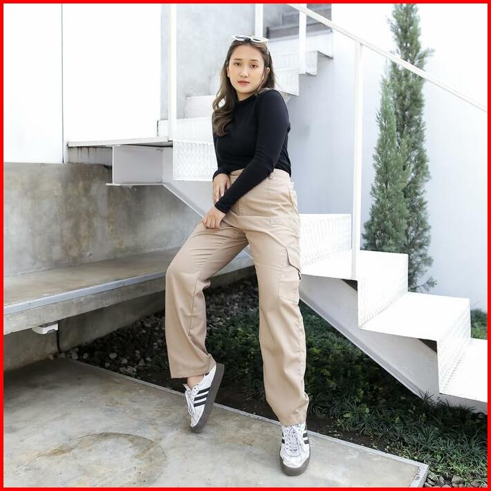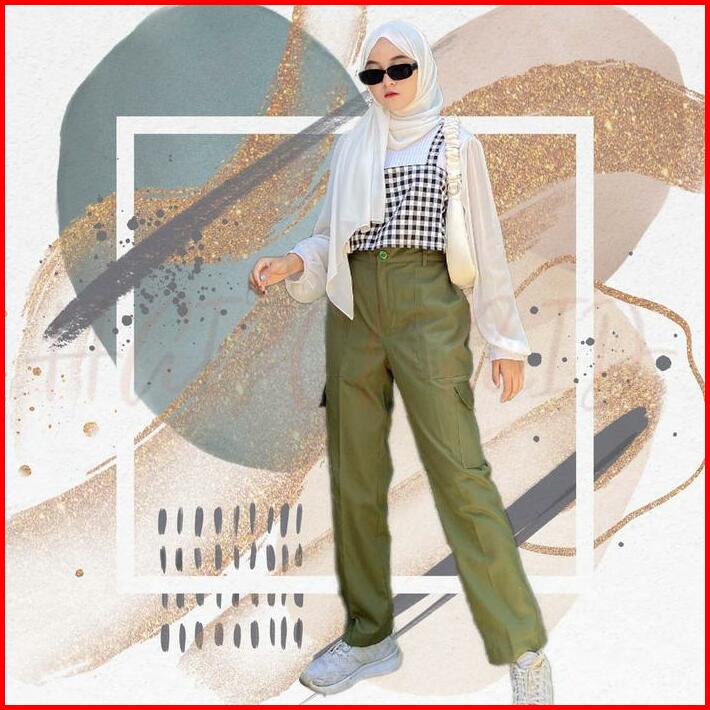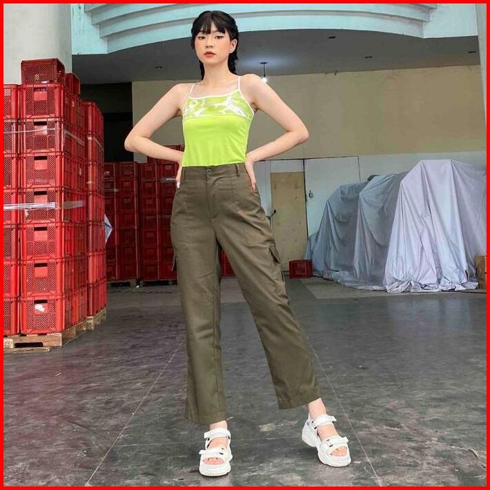 Celana Cargo Chino Pants Army Stacie Pocket Pants M