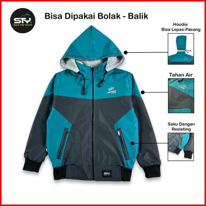 Save The Youth Jaket Bolak Balik Anak Laki-laki Parasut Tebal Anti Air Usia 3
