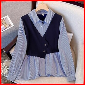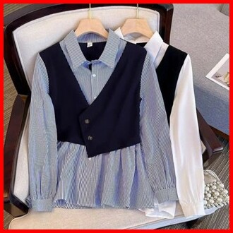 Promo Termurah Eliana Top Blouse Hem Vest Plained Stripe Atasan Kemeja Wanita Remaja Korean Style Premium