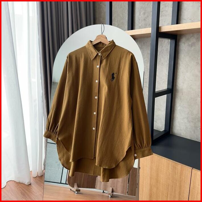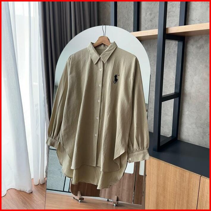 By.hana 492 Kemeja Linen Polos Bordir Atasan Panjang Wanita